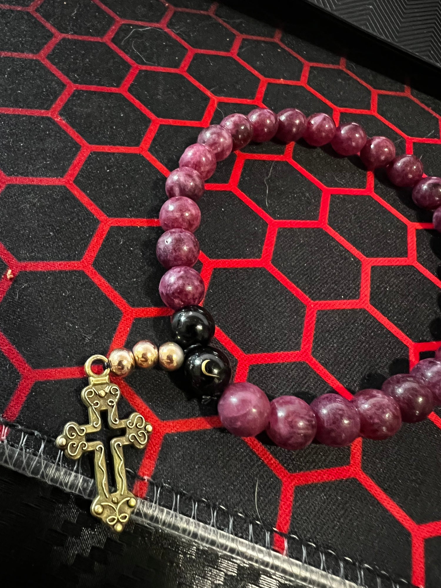 The Black and Golden Wired Agate, & Dark Red Jade. Together, these stones forge a bond between your spirit and the essence of the earth, Together, these stones forge a bond between your spirit and the essence of the earth.